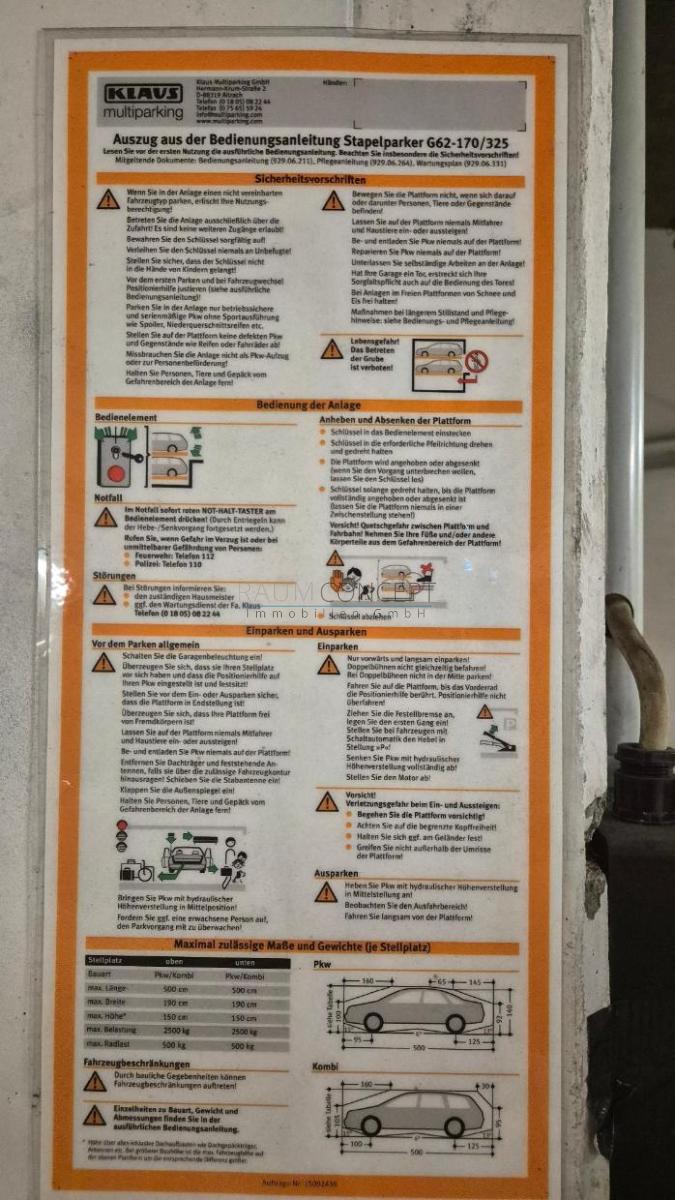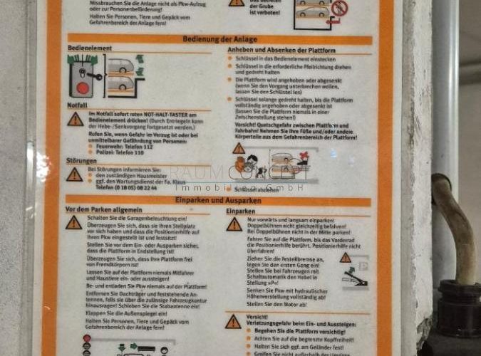 Zur Vermietung steht ein gepflegter Tiefgaragen-Stellplatz (Doppelparker) im Untergeschoss eines Wohn- und Geschäftshauses in bester Innenstadtlage.