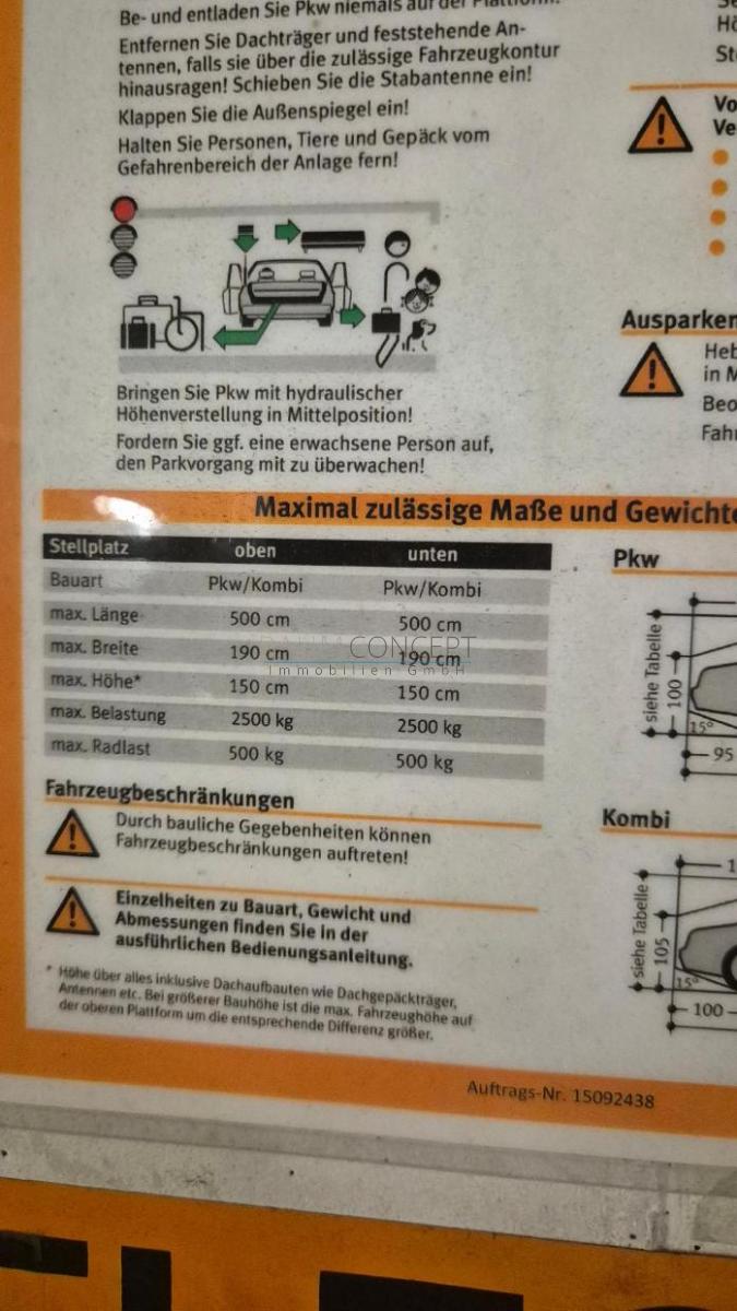 Maße und Hinweise sind direkt am Stellplatz angebracht